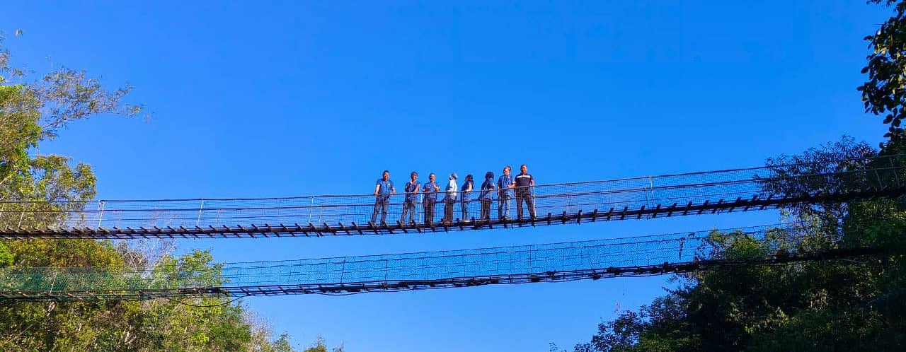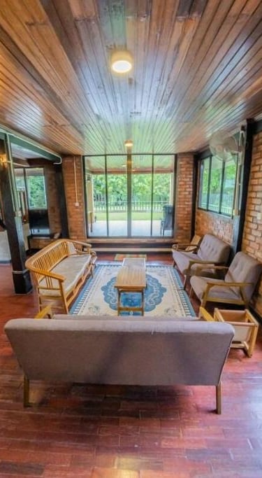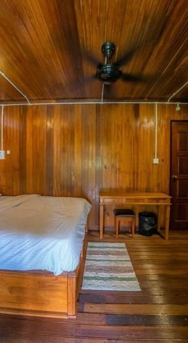 Air-conditioned three bedroom with queen beds and floor mattresses, perfect for up to 11 guests sharing a warm, village-style space.