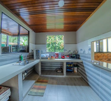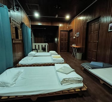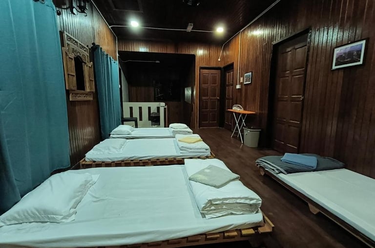 We have queen beds and floor mattresses, blending comfort with a cozy village feel.