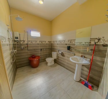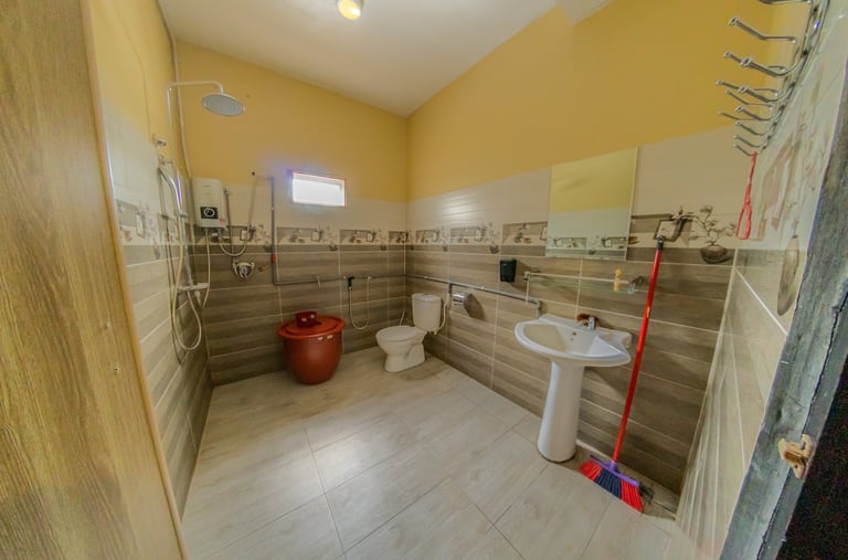 Bathrooms are shared among guests, maintained clean and accessible at all times.